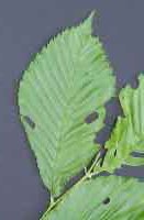 鋸の歯のような形状だが、先端が丸くなっている。ブナの学名"Fagus crenata"の"crenate"は「円鋸歯状」の意。(写真:ブナ) | ![]() |